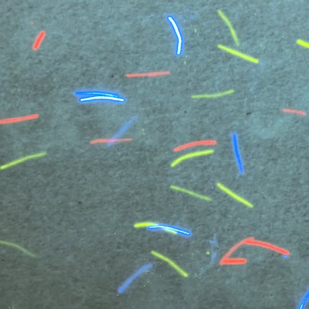 •该纤维可(kě)用(yòng)来制作(zuò)防伪纸张。该纤维是有(yǒu)颜色的(红、蓝、绿等)或者无色,混入纸浆抄纸后,自然光下或者紫外灯等工(gōng)具(jù)下观察,彩色纤维随机分(fēn)布在纸张中(zhōng),用(yòng)针可(kě)将纤维挑出。