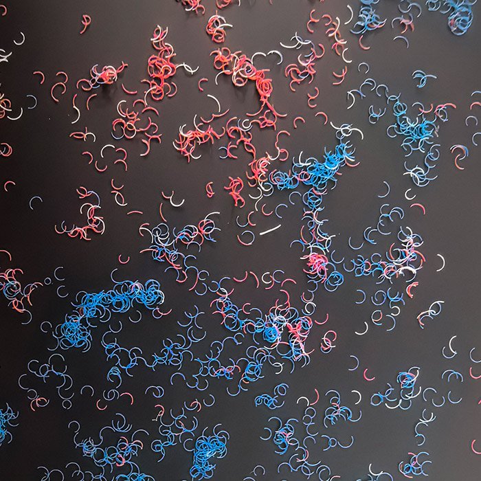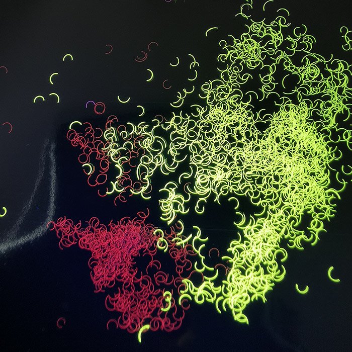 纤维每根呈特别形状,颜色可(kě)定制。无色到有(yǒu)色,如无-红;有(yǒu)色到有(yǒu)色,如红-红;有(yǒu)色到变色,如蓝-绿。
