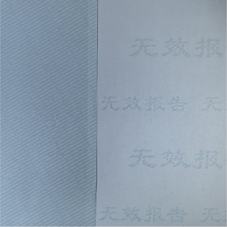 •防复印检测报告纸:一般通过印刷線(xiàn)条或者点精(jīng)细图文(wén),使得复印物(wù)复印时,会对复印机造成干扰,故而显示比如“COPY”或者”VOID”等图案,也可(kě)根据需定制。光漫反射防复印纸,在纸表面用(yòng)真空蒸汽喷镀颗粒极小(xiǎo)的铝粉,再涂布,或者以覆膜的方式在纸表层黏附一层有(yǒu)着色剂及金属箔的透明膜制成,复印后一般显示全黑。